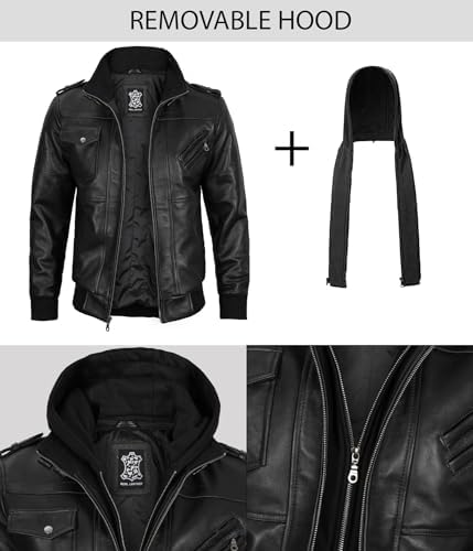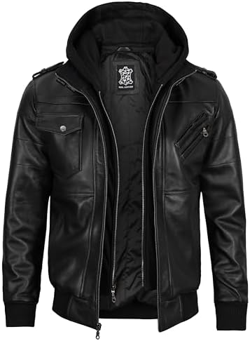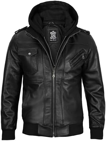 Elevate your look with the Domnite Men’s Full Grain Leather Hooded Jacket. This innovative bomber jacket features a removable hood, combining rugged style with practicality, perfect for the confident man on the go.